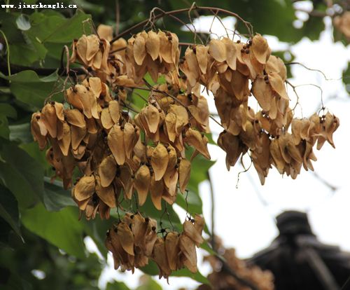 梧桐子图片2、梧桐树上一串串金黄色的梧桐子