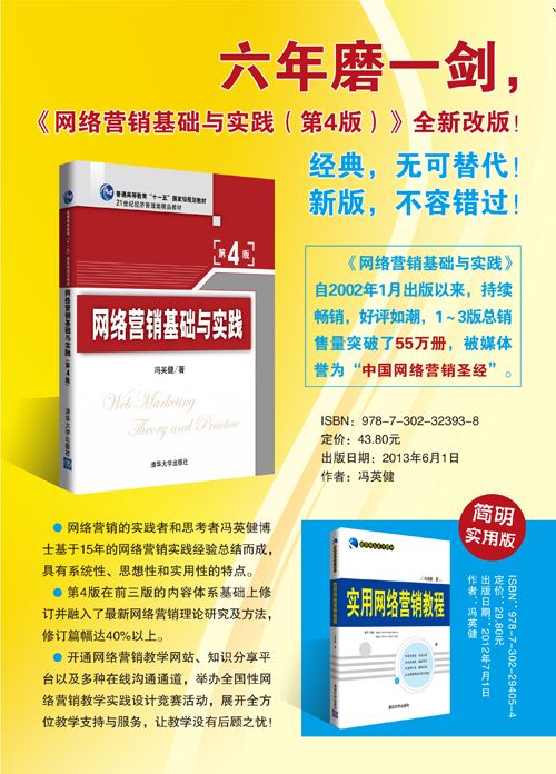 今天看到清华大学出版社第六事业部为《网络营销基础与实践》第4版制作的书讯:
