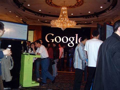 南京的搜索引擎战略大会SES上,周韶宁的keynote和王怀南的演讲主要都围绕Google文化和价值观展开。Google dance本身是个很好的创意,但晚上的google dance大派google文化衫,与google标志合影,巨幅google标志的灯光背景下,google员工包括周韶宁等穿着白色文化衫在舞台上狂蹦迪,两个大屏幕上轮番展示google中国员工谈个人感受的录像……感觉Google中国策略是在天上扔炸弹,这个炸弹就是搞意识形态领域的灌输和传播,诸如价值观、文化宣传等,直听到大伙一愣一愣的。除了天上扔文化炸弹,还在地面打业务巷战。地面部队——遍布各地的代理商业务员则象蚂蚁一样街头巷尾地铺开活动,目前全国中心城市已经有5支战斗力特强的部队了,但周还说要再加派兵力。