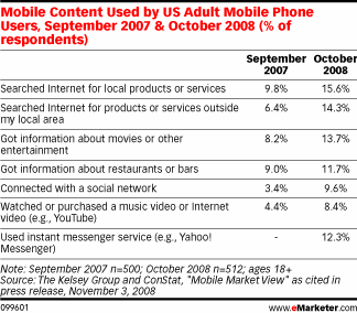 参考资料:美国手机用户应用的一项调查数据(2008年11月)