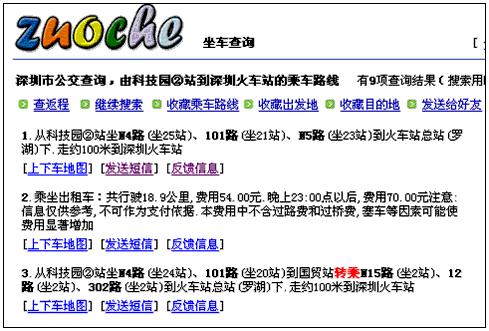 今天,同事号召关注坐车网(zuoche.com),原来是坐车网开通了深圳公交查询服务,在广州时由他人介绍使用过坐车网查询公交线路,使用体验感觉不错,由于口口相传,对其影响颇深,足见其在广州市场口碑不错,目前已开通广州、上海、佛山、深圳4个城市,通过广州使用体验感觉其本土化战略做得不错,其界面简洁,功能简单,仅仅一项公交查询,但却足以实现把握网站运营的永恒主题---“满足用户需求”,虽然目前我不知其运营、盈利情况,但从其在广州的口碑效应来看,其无疑是成功的,在此,透过坐车网为例,来探讨一下小网站生存之道: