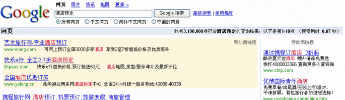 某些业内人士认为此次的最高每次关键字点击价格(“maximum” CPC)代替实际每次点击价格(“actual” CPC ),Google全是为了赚更多的钱,大企业有能力为顶部广告位扔更多的钱设置“最高上限”保持高曝光位置,而小企业则很难与之竞争。以下写着“赞助商链接”皆为广告:分为左侧顶部广告和右侧广告。
