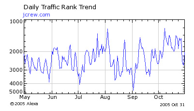图1.jcrew.com网站访问量Alexa排名统计曲线